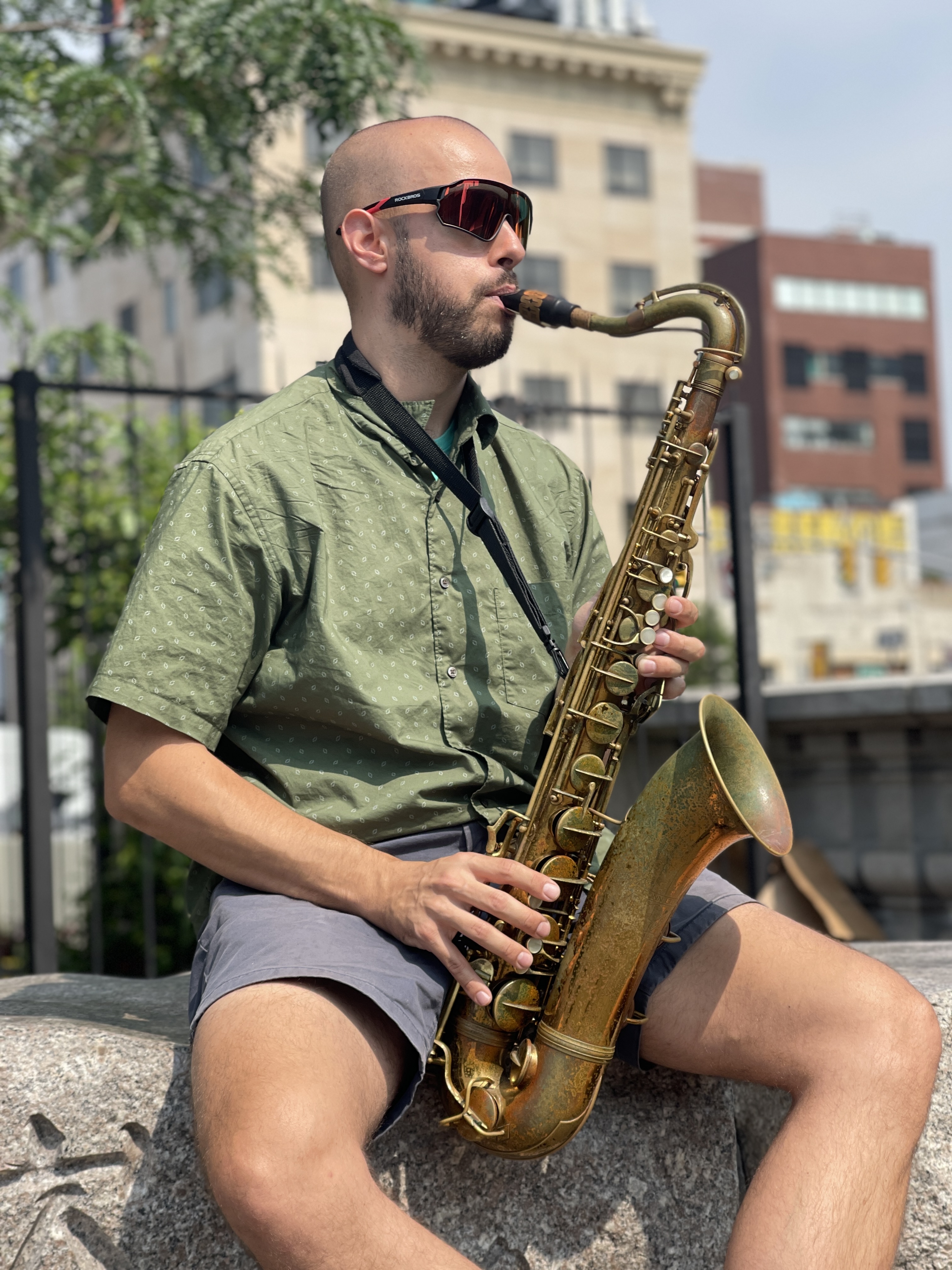 From the salt-laden shores of Mattapoisett, Massachusetts, Travis Bliss is a multi-instrumentalist, composer, and teacher now based in Brooklyn, NY. Primarily a saxophonist, Travis’s style and musical aesthetic speak to diverse but interrelated interests and talents. At times mellifluous and lyrical, like the titanic tenor sounds of bygone era, championed by early swing masters such as Lester Young, Coleman Hawkins, and Chu Berry. In other moments terse and fleeting, like deconstructed lines and planes of Piet Mondrian or the pointillism of Anthony Braxton and Stump Evans. Aiming always for a stronger understanding of the self, Travis has a trove of interests beyond music. Attempts to find connection, shared and transferred meanings, new metaphors, new possibilities of unity and cooperation between seemingly disparate areas, fill this ever-refilling fountain with a richness of approaches to living and working as an artist.